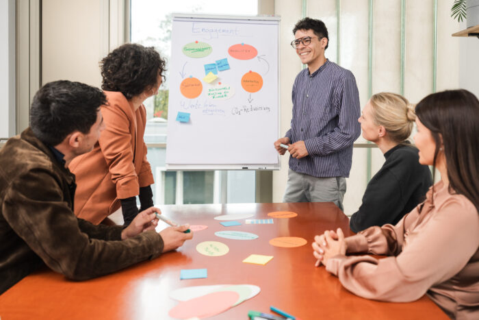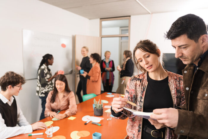 Austausch und Vernetzung der Engagierten untereinander sind uns sehr wichtig – ob beim Kaffee in der gemeinsam genutzten Pantry-Küche oder auf Veranstaltungen, die wir organisieren. Wir bringen Coworker:innen aktiv miteinander ins Gespräch und bieten analoge und digitale Plattformen für gemeinsame Kommunikation. Denn das Wissen und die Potenziale aller soll allen zugutekommen.